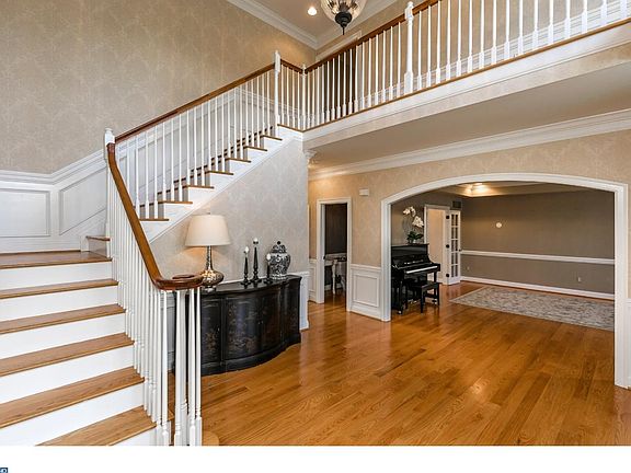 This remarkable, 5 BR, 3/2 BA home is sited nicely on its 2 acre lot. Filled with upgrades, handsome architectural details and sweeping spaces with front and back views, this 5,367 sq ft residence has a sophisticated appeal. Attention to detail is immediately evident upon entering the elegant 2 story foyer with grand staircase. With gleaming hardwood floors, crown moldings, chair railing, wainscoting and lush carpeting, the floor plan is perfect for entertaining and features a formal Living Room with fireplace, a grand Dining Room and a handsome study with French door entry from living room and dining room and a double sided fireplace shared with the Family Room. With its crisp color palette and glossy white woodwork, the Family Room is a handsome backdrop for the stunning view visible through the bank of windows. A unique window seat beckons for reading and naps. The coffered ceiling adds a finishing touch. The kitchen is stocked with amenities like stainless appliances, designer lighting and cabinetry, granite countertops, an island with prep sink and a convenient butlers pantry that joins the room to the dining room. The sun filled Breakfast Room spills out onto the deck that is set to entertain. With its private views, this area acts as another living space nearly 3 seasons a year. A convenient mudroom with additional front entrance and a formal and informal powder room complete this level. Upstairs, the open hallway connects the bedroom suites and overlooks the downstairs living spaces and through the high windows, the views outside. Gentle rays of sunshine fill the lavish master suite that features recessed lighting, ceiling fan and separate sitting area with large walk in closet. The en suite is a sun-drenched refuge with its deep soaking tub, his and her sinks, frameless glass walk in shower and separate water closet. Four additional bedrooms are serviced by two sets of Jack n Jill bathrooms. The lower level is finished as well and offers a family room/game area and exercise room. Audio speakers throughout the house with independent volume controls. The deck also has 4 outdoor speakers installed. The net effect? In the quiet of the morning, as you sit back and sip your espresso, you can hear 'home' humming in the background. You know how it is when you get that feeling!