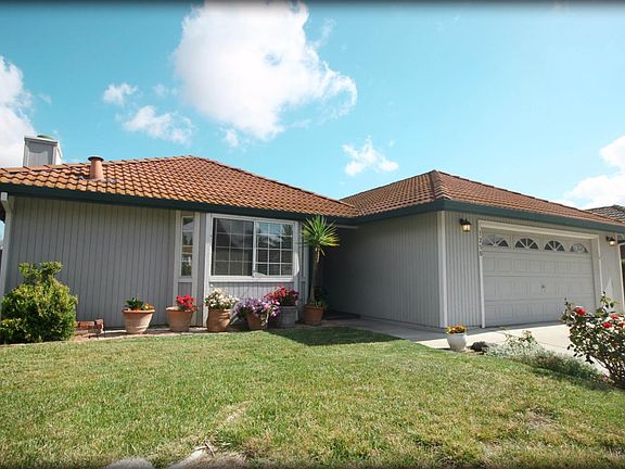 Inviting single story corner lot home situated in a cul-de-sac ready for its new owner! This turn-key home features 1542 square feet of living space, three bedrooms; all with walk-in closets!, two full baths, kitchen with bay window and breakfast bar for added seating, family room with brick fireplace, and covered patio. Backyard offers two patio areas, wonderful for entertaining!... extra wide gates in backyard give option for additional parking or storage for small trailer or boat! And don't forget to check out the spacious two car garage! Located within close proximity to grocery store as well as access to Hwy 156...great for commuters!