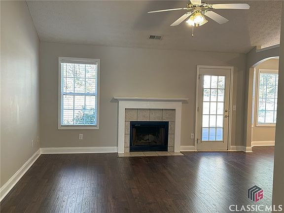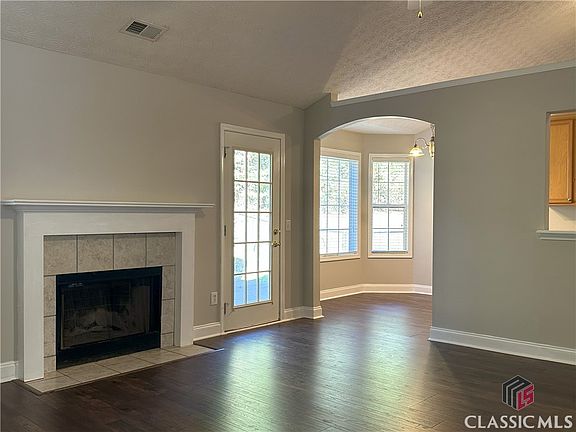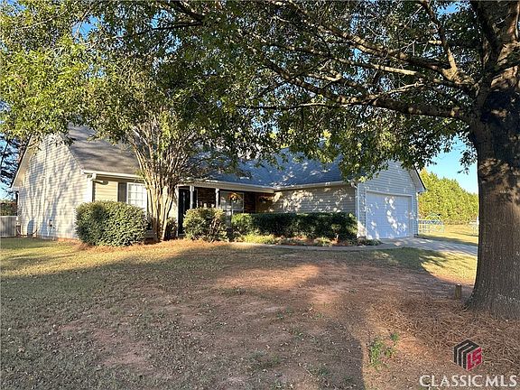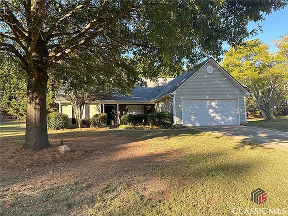 Beautifully updated one level, 3 Bedroom 2 Bath, home perfectly located across the street from Wire Park. Fresh neutral paint and luxury vinyl plank flooring greet you upon entering this open concept home. The great room and formal dining room are spacious and inviting. The dining room is enhanced by the natural light of the double window and the wood trim adds an elegant touch. The great room has a soaring ceiling with ceiling fan and cozy fire place. The kitchen is equipped with new stainless steel appliances and the breakfast area with bay window is just steps away. The owner's suite is spacious and the trey ceiling gives the room extra charm. The ensuite bath has double vanity, soaking tub and separate shower creating a relaxing retreat. The split bedroom floorplan offers maximum privacy. The property boasts a fully fenced back yard with deck and is tucked away on a cul-de-sac. Nestled in a convenient and close to downtown Watkinsville location, this home is perfectly positioned for enjoyment of all that Watkinsville has to offer and the thoughtful updates create the perfect backdrop for stylish and comfortable living.