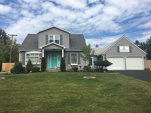 Unpack your bags & move right into this vinyl-sided 4-bedroom, updated Cape w/new updated kitchen w/quartz countertops, backsplash & flooring. Beautiful sunny living room w/new flooring & molding. House is freshly painted throughout! Lots of outdoor living spaces including an open, stamped concrete patio, screened-in porch & completely fenced-in backyard (Fence was just installed in May). Updated landscaping. New driveway (2016) Large 2-car garage has new steps built up to an open large storage/attic area. Large family room is cozy with wood stove & beams which overlook the fenced yard.