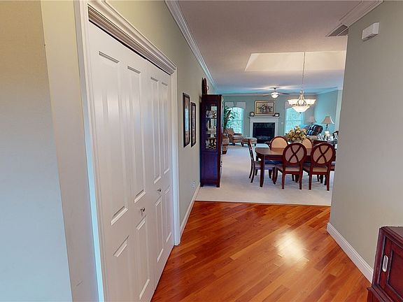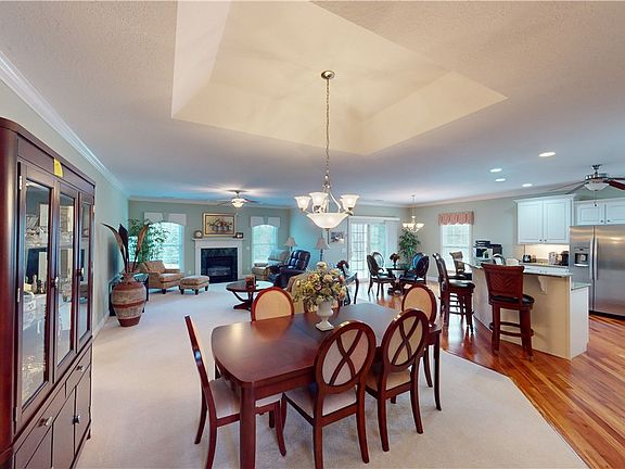 First lot sold in subdivision for its premier location, backs up to rolling acreage with trees. Semi-private backyard. Owner bumped out the original floor plan for additional square footage. Master bath has jetted tub plus spacious walk-in shower. Trayed ceiling in DR and MBR beautifully showcases lighting. Exterior has some brick trim. Garage is 2 car but also with a double door side entry to additional 8.35 x 5.8 work area. Andersen windows. Both a regular and a tankless water heater for all radiant heated floors! What a great upgrade, wonderful heat to have! Kitchen with beautiful granite countertops and upgraded stainless appliances, Fridge-1 yr., MW, Range and Bosch DW, 2013. Crown moulding and epoxied garage flooring too! This has it all plus!! A 55+ community. HOA $1,800/yr. 1 rp
