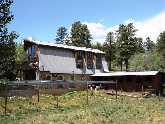 This property is not for everyone, but it is a great home with lots of character and a half-acre lot backing to DeMiguel school. 1700 sf home plus a 1200 sf. masonry storage/workshop main level.Loads of windows add passive heat and lots of sunny living space. Metal roof, beautiful wood and large beam ceiling, wood flooring on upper level, saltillo tile flooring on living area level. 2 bedrooms, 2 baths, open loft,den or potential 3rd bedroom plus a bonus room.3 wood stoves inc. one in living area and an antiques stove in kitchen . Attached 750 sq. building with stalls. Various outbuildings on property including 4-stall portable barn would make great workshop. Loads of potential for the right buyer. 24 hr. notice to show and listing agent accompany.