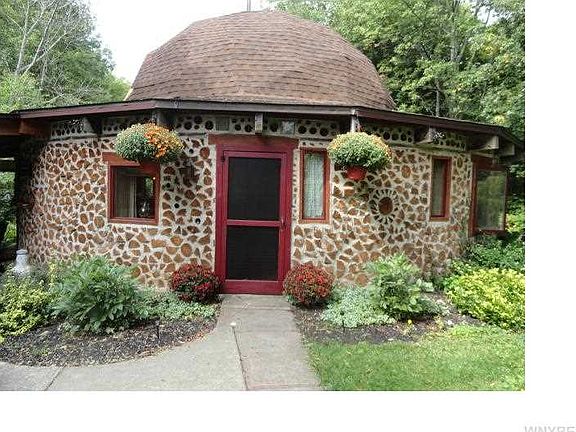 Over 6 acres of privacy abounds in this unique geodesic post and beam round house. Completely open floor plan using "earth wood" construction. Cozy contemporary, inviting natural light throughout. Russian fireplace provides heat throughout. Second floor domed family room or master bedroom with deck over looking 6+ acres. Great entertaining home. Also could be terrific vacation home. Raspberries & grapes in beautifully landscaped yard. Enjoy the tranquility of the property! Call Today!