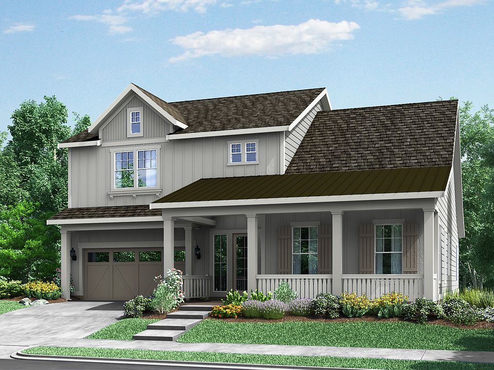 The spacious Kindred offers a main level owner's suite with wood flooring and granite countertops on the bath vanities. The chef's kitchen, appointed with upgraded cabinets, quartz counters, gas cooktop, and wall oven, opens to a gathering room and casual dining area. An over-sized laundry room is also located on the main level. Two additional bedrooms and a large loft are found upstairs.