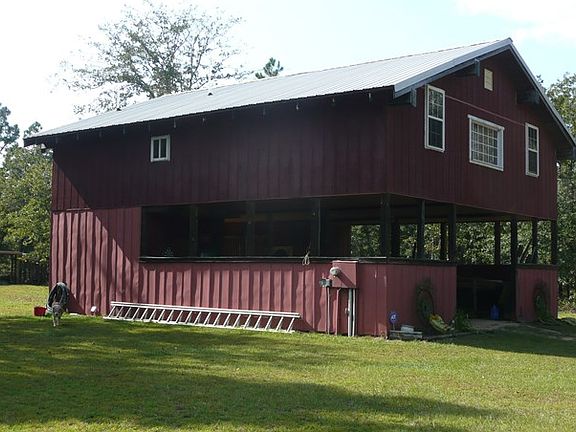 Two bedroom apartment (needs finishing touches) over 32 x 36 storage area, easily framed for 4 stalls or run-in. Half bath, laundry & workshop on lower level. Additional land is available & adjacent to Aiken Gopher Tortoise Heritage Preserve with riding Trails over 1600 acres. No CO & Sold AS-IS