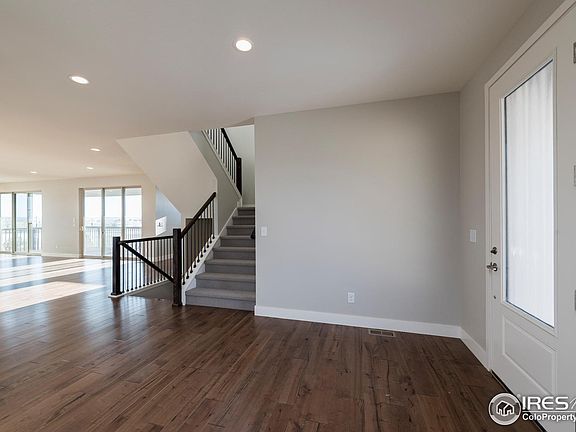 Full finished walk-out basement backing to the Barefoot Lakes with amazing front range views. Cul-de-sac location. Ready for immediate delivery. 8ft doors, iron railing, expansive island with White Ice Slab Granite and Quartz Azt Linen counters, Rky Mtn Trad Amer Maple Rush 4-5-6 Alt Width floors, Alder Estate (dark) cabinets, BOSH SS gas appliances, second sliding door out to the extened covered deck. BOSH Cntr-depth Refrigerator/Hi-Efficiency Washer/Dryer.