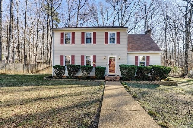 This move in ready 4-bedroom, 2.5-bathroom, 2 story Colonial sits on over .5 acres in the sought-after Midlothian district! The kitchen has been updated with stainless steel appliances, a smooth top stove on the center island, and beautiful tiled back-splash. The tiled flooring and showers in each of the 2 full bathrooms add to the modern updates of this home. The den is cozy with wooden wainscoting, complete with a brick wood burning fireplace. The partially fenced in back yard offers plenty of space for entertaining. In the back of the home the rear deck extends to a large concrete patio, the front yard offers another large wooden deck for plenty of outdoor leisure time! This home is cozy but spacious and perfect for its new owner!