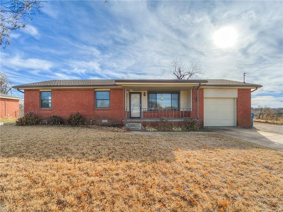 Updates to this one owner property in prime location in Choctaw include a new roof in 2022, new water heater and well pressure tank & pump in 2021, and new carpet in 2020. Two bedrooms, One & one half bathrooms, large living room, dining area off kitchen, "office" space & large screened in porch or Florida room along the back that is included in the square feet. Inside access to huge storm shelter. Home sits in .63 acres with a 50x25x12 shop on a 4 inch concrete slab reinforced with rebar, 3 inch posts & purlins, and 26 guage sheet metal walls and roof. Shop has 3 bays with overhead doors and one bay with a walk through door and enclosed RV parking on the east end. Shop has full electricity & a gas heater.