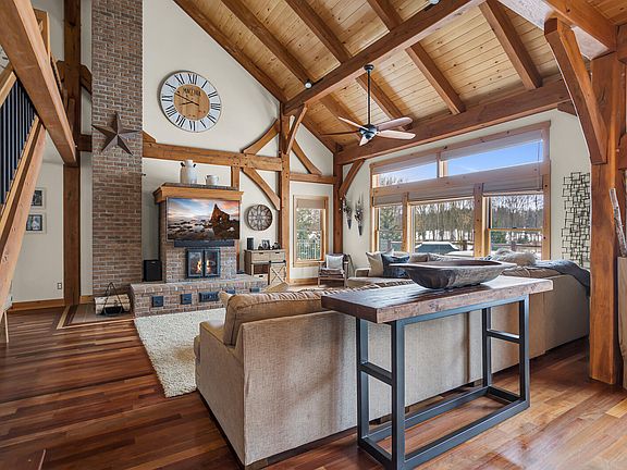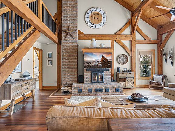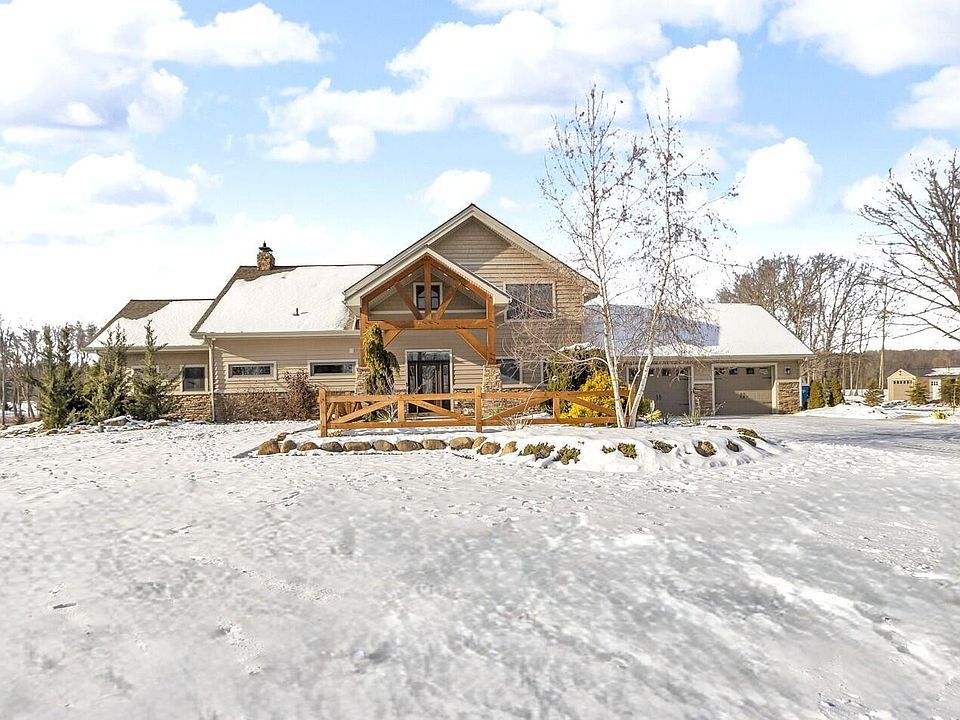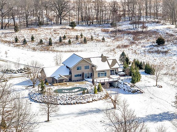 BOLD, LUXURIOUS & COMPLETELY CUSTOM SETTING THAT WILL STOP YOU IN YOUR TRACKS! A tree-lined concrete driveway leads you 500 feet off the road to a massive timber & stacked stone pillar covered grand entry to welcome you home! This impressive custom home spans over 4300 fin sq ft intricately crafted w/sophisticated architectural & design perfection sitting on 10.33 secluded acres offering peace, privacy & upscale country living. Surrounded by immaculate grounds of hardscape landscaping, tranquil pathways enhanced by atmospheric lighting & hundreds of evergreens to ensure the privacy remains. Inside, this estate features expansive living spaces with an open & inviting layout that seamlessly connects the living room, dining area & spacious kitchen outfitted in rich cabinetry & massive granite center island. This is an absolute entertainer's dream, from the kitchen & dining room, glass doors open revealing the generous backyard boasting a sprawling composite deck, stamped & colored concrete patios, gazebo for outdoor dining, heated pool & covered hot tub. Accents of timber frame beams, soaring ceilings, Brazilian Cherry hardwood floors, fireplace & dramatic floor to ceiling windows with natural light illuminating the open floor plan. Grand main floor primary ensuite with a walk-in closet, large private bathroom & direct access to the deck shaded by the retractable awning. Upstairs, two staircases lead to three additional bedrooms and an expansive full bath. One of the staircases opens up to a loft area overlooking the living room, ideal for a home office or bonus living space. The finished walkout lower level has even more room for recreation, a media area or guests with private home theater/rec room, half bath & gym creating endless possibilities for a future 2nd kitchen, wet bar & more. 2 Newer insulated, heated & (1) air conditioned outbuildings for hobbies plus a 24x24 barn with concrete floors & electric. One-of-a-kind heated two-car attached garage provides both character and extra space. In-ground sprinklers cover the entire lawn and the fenced in garden area. Some of the incredible updates include: 50 year warranty on house shingles (2017), whole house 48K Kohler auto generator (runs house, pool & outbuildings), boiler (2024), outdoor wood burner (2023), new pool liner (2024), pool heater (2023), CertainTeed insulated siding (2015), new covered hot tub (only used a handful of times), on demand hot water heater, RO system, paint, fixtures, landscaping & security system. Designed for grand-scale entertainment & intimate everyday living alike, this estate is a crown jewel. Premier location, less than a half mile from Farwell & Round Lakes, Jackson County's most coveted spring-fed lakes, several golf courses, The Grand River Fen Preserve, less than 20 miles to Jackson & Hillsdale plus a setting where neighboring property owners encompass 100+ acres each. This property has everything you needstyle, space, comfort and complete privacy. Don't miss your chance to own this extraordinary home with unmatched indoor and outdoor living.