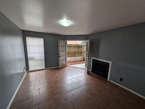 This stylish 2-bedroom, 1-bath condo combines comfort and convenience, located just minutes from Highway 90 and Beltway 8. It features spacious bedrooms with walk-in closets, a tastefully updated bathroom, and a cozy living area with a wood-burning fireplace. Enjoy indoor-outdoor living with French doors leading to your private patio, as well as a large outdoor storage closet. Don't miss this move-in-ready gem!