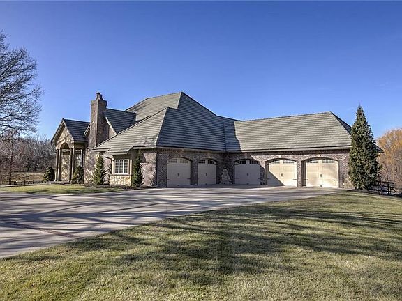 Built in 2007 this stunning custom home designed by Scott Bickford sits on 3 acres in the Blue Valley School District. With soaring ceilings throughout, a stunning great room w/beautiful stone fireplace, main floor master, dream kitchen great for entertaining, multiple MF office options, MF & LL laundry rooms, 6 add spacious BR's in a LL which also features a large rec room w/wet bar, an exercise room, plenty of storage and 2 additional garage/workshop spaces for a total of 7 spaces.