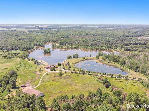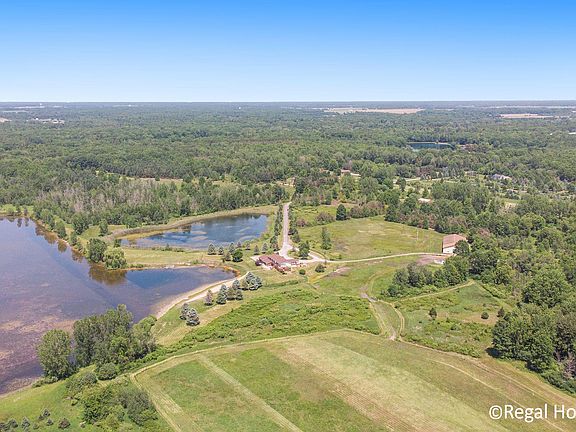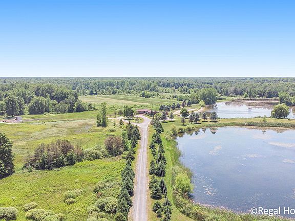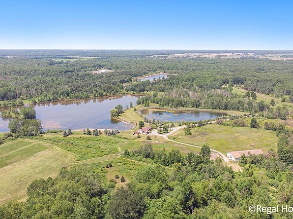 This executive 270 acre property is not one to just glance at, once you've indulged in all it has to offer, you will not want to leave. The road dead ends into the gated entrance to this property. You traverse along trees and lakes up a long drive to a large home situated on a hill overlooking your own private lake and estate. The rear of the home faces west for watching the sunsets over the lake from your back porch/patio. Lake is great for swimming, kayaking, and fishing. Fishing tournaments held here with great success. Inside the home features a large master suite, 5 bedrooms, 2 main floor family rooms, kitchen with popular center island and ample cupboard space. Fully finished basement with kitchenette bar area for entertaining, fireplace. Fantastic hunting. District 6 farm ground!