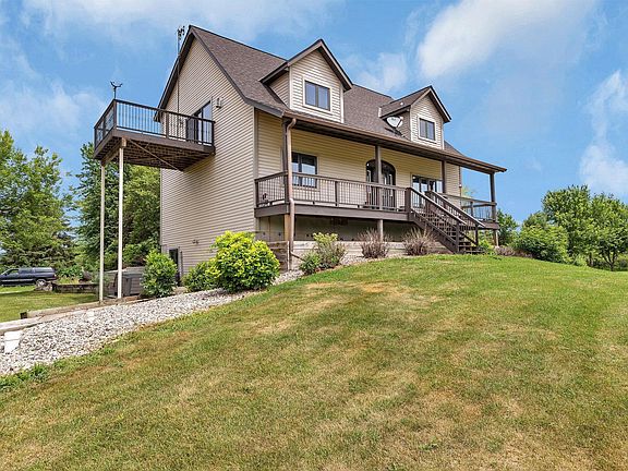 This 13 acre country property is located just 4 miles south of Hutchinson on a paved road with 330 feet of lakeshore on Eagle Lake. The property features a gorgeous home that gives you the up north feel with its finishes and amazing views. The updated kitchen, dining room and living room gives the open floor plan with a large front porch and deck off the dining room. The master suite which has its own 12x12 deck and office are are located in the loft. The home has in floor heat on each level. The outbuildings include a 30x40 heated shop with a 52x38x14 addition with car port, another 40x40 pole shed and a nice garden shed.