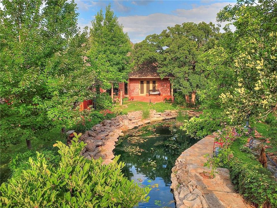 This stately brick home is located on nearly 2 wooded acres and features a truly one of a kind backyard retreat!! Located within a mile of the Kilpatrick Turnpike for easy access anywhere. Walk into a light and bright home from all the huge picture windows that overlook a gorgeous, park-like backyard view. Beautiful woodwork and wood floors/ 2 downstairs living areas/ centrally located kitchen overlooking backyard/ separate study/ upstairs game/media room and loft area overlooking entry. The backyard is a peaceful perennial garden! It features professional landscaping- mature trees- a large koi pond- a spacious covered, cedar outdoor living area with beautiful brick fireplace that is a great place to gather well into the fall season-another open patio dining space, and an over 800 sq ft 1 bedroom updated guest cottage with kitchen & laundry facility located at the back of the property. Guest house could be used for family members or income (airbnb). The options are endless.