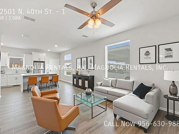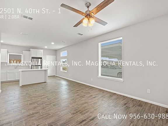 1st Month Free Welcome to 12501 N. 40th, a stunning new construction located in the vibrant city of McAllen, TX. This apartment boasts three spacious bedrooms and two full bathrooms, including a master bath. The open floor plan, complemented by vaulted ceilings and hardwood floors, creates a spacious and inviting atmosphere. The kitchen is equipped with stainless steel appliances, including a refrigerator, microwave, and stove/oven. For your convenience, a washer and dryer are included in the unit. The apartment is all-electric, with the tenant responsible for the electric bill. Water and trash services are included, and lawn care is provided, allowing you more time to enjoy your new home. Ceiling fans add a touch of comfort, and 24/7 maintenance support ensures any issues are promptly addressed. This apartment is pet-friendly, with certain breed restrictions and smoking is not permitted. Experience the comfort and convenience of 12501 N. 40th. 12 Month Lease 24/7 Maintenance Support Downstairs Modern Fixtures Pet Friendly With Breed Restrictions Water And Trash Water And Trash Included