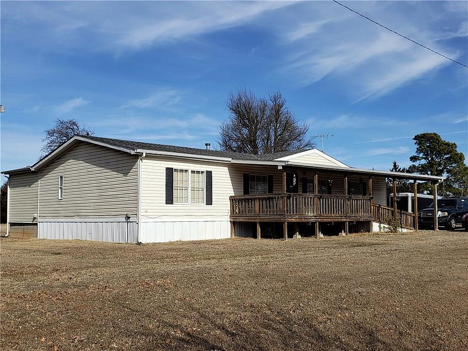 Rare find! 12+ acres in Carl Albert Schools. 3 bed 2 bath manufactured home featuring a spacious living area, formal dining room plus a large inside utility/hobby room. Several outbuildings: 12 x 15, 10 x 14, 16 x 16. 2 wells.