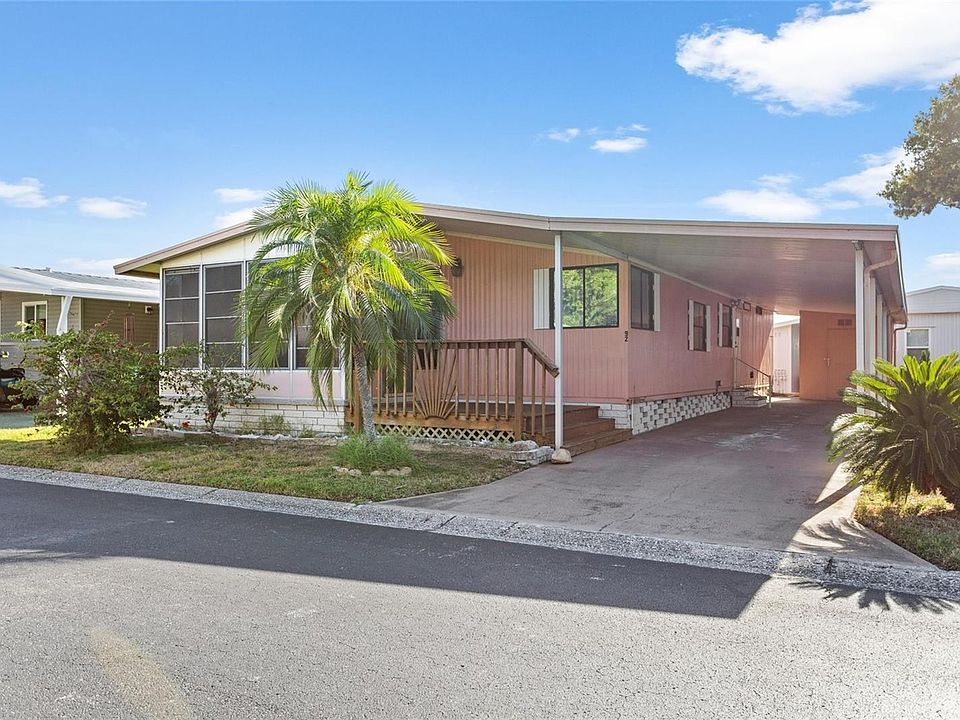 Welcome to the highly sought-after Glenwood Estates! Lot 92 is ready for its new owner that will see that this diamond in the rough has been worth the wait. Arriving at the mobile home, you will see the mature landscape and the two-car carport that has room for a golf cart. Notice the wonderfully built wooden deck that has space for rockers to enjoy your morning coffee. Immediately off the wooden deck, the mobile home opens to the sunroom. Once inside, you will find the living room and the dining room with cute built-ins. The kitchen is original and vintage, but functional with large windows overlooking the wooden deck. Down the hallway you will see a laundry room on your right with a wooden folding table and plenty of upper cabinets for storage. This home is one of few in the community that has indoor laundry. In the laundry room, there is a side door that leads to the carport. Back in the hallway, on the left is the guest bedroom with walk-in closet. Also, in the hallway there is a sizable linen closet. Directly across the guest bedroom, you will see the guest bathroom that conveniently has a door leading into the laundry room for easy access from the outside. At the back of the mobile home is the master bedroom with walk-in closet and bathroom with vanity and linen closet. It may be an older mobile home, but this gives you so many opportunities to really make this your own. Roof is 2015, AC is 2015, Water Heater is 2015. Monthly fee includes water, sewer, trash, lawn maintenance, Dusk-Dawn security, clubhouse, and pool area. Glenwood Estates is a 55+ community and they do allow up to 2 pets. Less than 4 miles to the local beaches, 22 miles to Tampa International Airport, less than 2 miles to the major shopping area that include grocery, home improvement stores, retail, pet stores and restaurants.