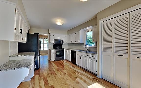 Check out this updated home located in a peaceful neighborhood! This beautiful floorplan boasts fresh paint, new basement carpet, stainless steel appliances (microwave, range, dishwasher, and fridge), beautiful hardwoods in the kitchen and dining room, new granite counters, and new exterior paint. You can entertain in the spacious main floor living room with vaulted ceilings and a fireplace, the basement living room, or on the back patio surrounded by the fenced in yard. Close to 69 highway access and shopping and restaurants off of 95th street. Make this home yours today!