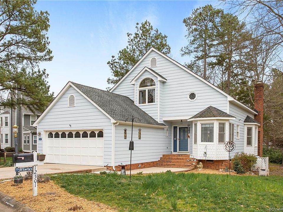 Lovely two-story, transitional-style home in a private cul-de-sac! Yard maintenance included! Located minutes from Short Pump Town Center, this home features hardwood flooring throughout the 1st floor living areas. Renovated kitchen has built-in bench seating, easy clean flooring, quartz countertops, stainless steel appliances, & soft close cabinetry. Spacious dining room w/bay window, crown & chair rail mouldings, opens to the Living Room with soaring, cathedral ceiling, stone fireplace with gas logs, hardwood flooring, palladian window, & French doors. Bright & airy Sun Room features new vinyl flooring, windows on 3 sides, & doors to rear composite stairs & new composite deck. FIRST FLOOR MASTER BEDROOM has carpet, 3 windows, spacious walk-in closet, & an ensuite bath with jetted tub, walk-in shower, & vanity. 1st floor laundry room & newly updated powder room. Upstairs, there are two additional bedrooms, plus a 3rd room that would make a perfect office/study/playroom or storage area & a hall bathroom w/tub/shower. Fresh paint & new fixtures throughout! Winchester Green is a member of nearby Wilde Lake so enjoy catch and release fishing & non motor boating! Easy living!