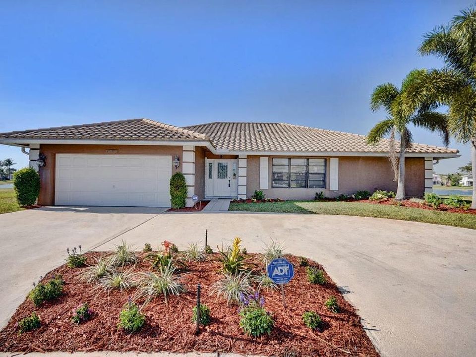 LOCATION LOCATION LOCATION This 3 bedroom single story split plan sits on a.29 acres pie shaped cul de sac waterfront lot with removable fence. Heated Pool with Unbelievable panoramic views. All bedrooms overlook sparkling lake. Tile, laminate and new carpeted flooring. Open spacious floor plan. Extra optional office in garage.Roof 2006, WH 2009 ' A ' Rated schools Low HOA.