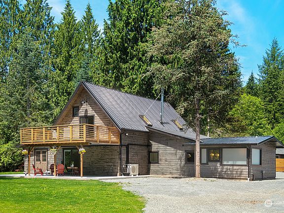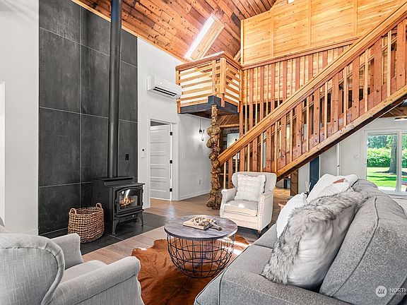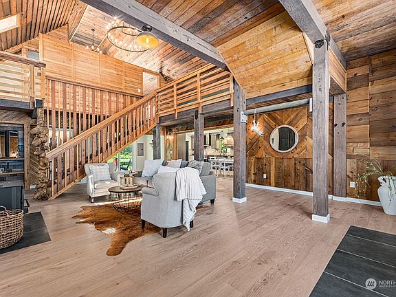 This completely restored & modernized three-bedroom, 3.5 bathrooms, with office stunning 2600+ Sq Ft home, showcases original woodwork and charm. Soaring ceilings, cozy wood burning fireplace. New black stainless-steel appliances, including washer and dryer, custom travertine heated floors in the master bathroom, metal roof, cedar siding & AC. Nestled on a shy 6 acres of serene parklike surroundings, this property offers a tranquil escape, lush green landscape & pathways along the creek for leisurely walks. The oversized four car garage /shop provides ample space for your vehicles and storage needs. RV parking pad & hook ups. Don’t miss out on this rare barndominium gem.