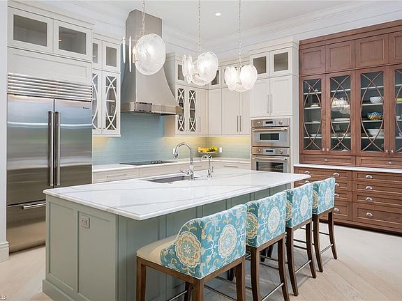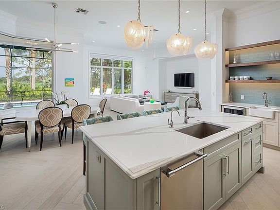 Stunning renovation and design by Jinx McDonald Interiors in this fabulous golf course views lot in Collier’s Reserve completes its appeal with full golf membership available immediately. This timelessly elegant home, with sophisticated interiors, boasts a gorgeous new kitchen complete with butler’s pantry, bar area with floating shelves and the finest of finish details and carpentry. The dreamy master suite offers a spa-like renovated bath with fabulous detail, huge walk in shower, free standing tub, and two walk in closets (one with terrific built-ins). The lighting, architectural detail throughout, gorgeous herring bone patterned light oak flooring throughout, and numerous special features make this home move-in ready. Fabulous nightly sunsets overlooking hole # 10, lovely orchid garden on oversized side lawn, zoysia grass, superb exterior lighting, and lovely pool and spa complete the outdoor space. Added easy living details include newer roof (2018), one brand new HVAC, dedicated master bedroom hot water heater, and air-conditioned, true three car garage. Collier’s Reserve is an intimate, low-density gated community with only 224 homes and no condos less than 3 miles to the beach.