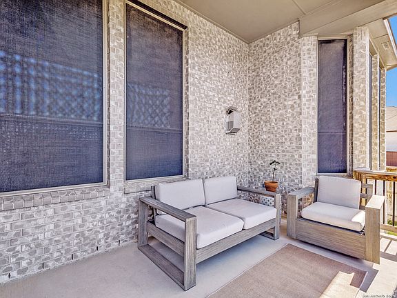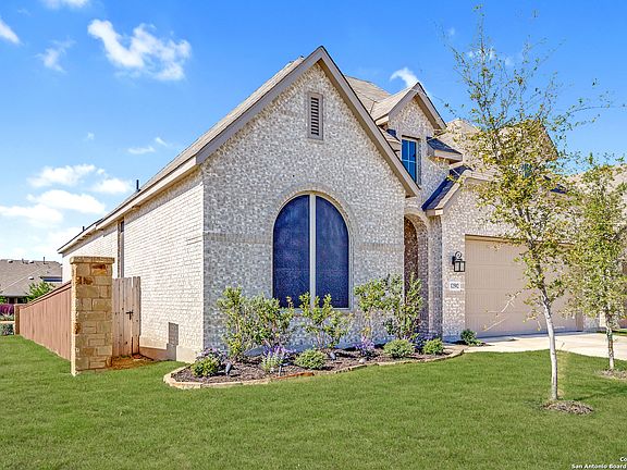Quiet luxury in Davis Ranch just hit the market on the west side of San Antonio adjacent to Government Canyon! This 4-sided brick Highland-built home gives you 4 bedrooms, 3 bathrooms, and a roomy 2318 sq ft of living space. Step inside the foyer of this one level home to find tall 12' ceilings, wood like tile flooring, and a home office. The chef's kitchen is equipped with a beautiful farmhouse sink, built-in oven and microwave, a 5-burner gas stovetop, contemporary shaker wood cabinetry with custom hardware, and quartz countertops. This elegant home also boasts a walk-in pantry and multiple oversized hallway closets providing copious storage space to keep everything neat and in its place. The primary bedroom features a bay window, spacious walk-in closet and a spa-like bathroom with dual vanities with a big, bright window, and a separate garden tub and shower. Enjoy the summer months entertaining in style on the covered patio or relaxing near your custom black brick fireplace in the cooler months. You'll also love the pool, playground and strolling-friendly sidewalks. Located on a corner lot on a cul-de-sac in the highly-coveted Northside ISD, this home is zoned for Tomlinson ES (in the neighborhood), Folks MS, and Sotomayor HS. Water softener conveys. Fridge/ washer/ dryer/ drapes are negotiable. Low OCL tax rate! It won't last long, so call your favorite Realtor today to schedule a time to see it!