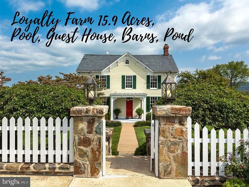 Paved roads lead to the idyllic "Loyalty Farm" that checks off all the boxes. Close to Historic Leesburg and the Dulles Greenway Corridor, 10 minutes to the MARC Train nonstop rail to Washington DC., Loyalty Farm has it all; a Pristine Restored Farmhouse with an exquisite modern interior, a Fantastic Deep Pool, Darling Guest House, 3 Season Dairy House, 6 stall Bank Barn, Multiple fenced paddocks w/ Run- In sheds, detached garage, extensive professional landscaping, fishing and boating on the pond. Steeped in tradition and devoted to the craftsmanship of a time gone by, Loyalty Farm was built to last. Constructed in 1860, just before the Civil War, today Loyalty is a magazine caliber example of The New-Old House. Here you will find a winning combination of 19th Century architecture tailored to modern living. The current owners have spent over 20 years expertly modernizing the house and outbuildings and improving the land without sacrificing the charm that only an old farmstead can give. The final product is a fantastic country compound set in a spectacularly beautiful and private wonderland.Enter the main farmhouse and hospitality and gracious living is instantly felt. The delightfully sun filled main floor is true to form with two living rooms, one grand, one informal, a beautiful centrally placed dining room, a cheerful and nicely appointed kitchen and 2 fantastic side porches. The patina of mellowed wood floors and the feel of wonderful antique hardware in your hands will transport you to another time. Wavy glass windows offer views of cool blue pool water, abundant flowering gardens, mountain views and lush rolling pastures.The Bedroom Level maintains the feel of rooted history while the benefits of modern comforts such newer baths, upper laundry and today-sized closets make everyday living easy. A long center hall separates the three bedrooms for privacy. The sizable Master Suite has a modern bath, multiple large closets and a window seat. A front guest room shares a full hall bath with bedroom number three that can only be described as D-R-E-A-M-Y. And for those balmy nights the upstairs enjoys a full-sized sleeping porch with views overlooking the mountains and farm. Just off the Kitchen porch and past the koi pond is the adorable matching guest house or companion cottage with views of the big pond and magnificent Bank Barn. With a nod to an English cottage, the restored space is storybook charming with a checkerboard Kitchen floor, a cozy living room, and a sizable upper bedroom with a full bath. And if you need a little more guest capacity- the 3-season Dairy is sure to delight. A large studio style space incorporates a one-bedroom loft, full bath, a functional galley type kitchen, dining area, private rear patio and an expansive home office or art studio space. From here it is just a short walk to the 6-stall barn w/ electric and water housed in the lower level of an awe inspiring bank barn in excellent condition. The barn complex also includes a tack room, wash stall, a large stone run-in shed (2 additional sheds on property) and a machine shed.If you must break with tradition, then it would be at the Pool where a Cool Caribbean Vibe is felt. There is a covered lounge area and extensive pool decking- the perfect place to Chill!Recent updates include: a complete pool overhaul, new boiler, new H2O pressure tank, new H20 Filtration system, new septic system (Dairy), new appliances, new cypress siding, new mahogany porch flooring, new master shower, newly painted interior, new light fixtures and faucets, newly refinished Guest House.The very best of old meets new. Who will be the lucky new owners of the fantastic Loyalty Farm?!