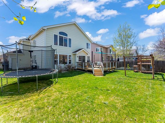 * $7,000 CONCESSION OFFERED w/FULL LIST PRICE OFFER! * Welcome to your new home in Thornton's Meadow Park neighborhood! Situated on a lot directly across the street from the community pool, this is a great place to settle into before the summer heat hits... A short walk away is a large grassy park and playground, too. The main level of the home boasts vaulted ceilings as you enter, and offers several separate living areas to gather together or find your own space. Downstairs you'll find a flex room that can be used as a non-conforming guest/bedroom, office or workout space, as well as an unfinished storage or craft/workshop room. The main area of the basement has been transformed into a media room & is fully wired for surround sound! Looking to enjoy the outdoors this summer? The backyard has a large deck, complete with a shade sail that will be included for the next owners to enjoy. Other perks of the backyard include a playground set, trampoline (both included) and also gardening beds to the side for planting veggies or flowers this season. Newer roof (2018), newer furnace (2020), newer A/C unit (2017). Tesla Solar Panels are already installed for you on a Power Purchase Agreement (PPA), which will help to keep your utility bill steady. Come visit & see what your summer could be like!