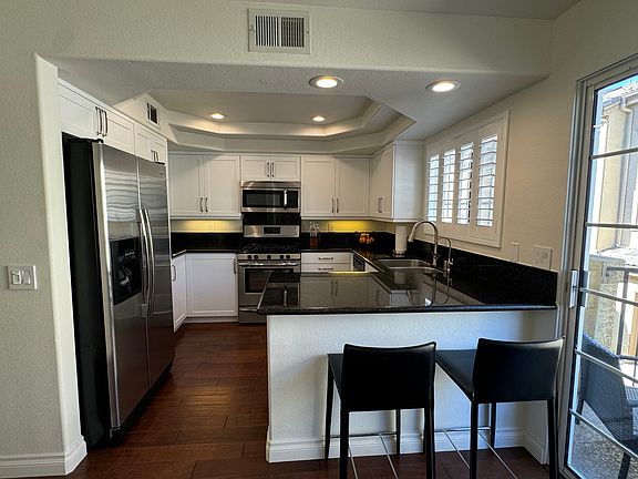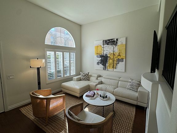 Stunning 2-bedroom, 2.5-bathroom upgraded townhouse in the highly desirable Crest at Del Mar community. Featuring elegant hardwood-style flooring throughout, the living room boasts a vaulted ceiling, creating an airy and spacious atmosphere. Both bedrooms come with en-suite bathrooms for added privacy and convenience. The upstairs laundry closet is a practical touch. Enjoy a lovely balcony off the kitchen/breakfast area and a sunny patio at the south-facing front door. Conveniently located within walking distance to One Paseo, Del Mar Highlands Town Center, shops, restaurants, schools, and entertainment, this home is just minutes away from the beautiful Del Mar beach. Plus, easy access to the 1-5, 56, and 805 freeways makes commuting a breeze. The unit includes a two-car attached garage with extra storage space. As part of the Crest Community, residents can enjoy amenities such as a heated pool, spa, fitness center, and clubhouse. Requirements for Move-In include 1 month rent, credit report, security deposit. Tenant pays for gas & electric, internet, cable.