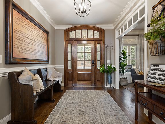 Presenting an exquisite 6-bedroom, 5-bathroom home with a 3-car garage in Wakefield Plantation, boasting unparalleled curb appeal! The entrance boasts a welcoming front porch, charming board and batten shutters, and a stunning glass door. The kitchen is beautifully appointed featuring Thermador appliances complemented by custom cabinetry, a vegetable sink, a wine cabinet, a farmhouse sink, and a versatile scullery area adaptable for office space or homework station. Adjacent to the kitchen you'll find dining area and a sitting nook. The main level also features two fireplaces, a two story family room and a guest bedroom with a full bathroom. Upstairs, the relaxing owner's suite includes a sitting area, whirlpool tub, walk-in shower, dual vanities, custom closet and your own private screened in porch. Three additional secondary bedrooms, a spacious laundry room, and two additional full bathrooms complete this level. Descend to the finished basement, with soaring ceilings, a stone fireplace, TV area, and an in-law/teen suite with a kitchenette, bedroom, and full bath. A substantial pool table space adds to the entertainment options. Notably, the home features an additional nearly 700 sqft basketball court/gym for versatile use. The home is equipped with an audio system throughout. Outdoor living is a delight with a screened porch, multiple decks, a patio boasting a stone fireplace, a built-in grill, and a fenced yard with irrigation. Wakefield Country Club offers golf, tennis and a swim club with a separate membership. This property epitomizes luxury living and entertainment!