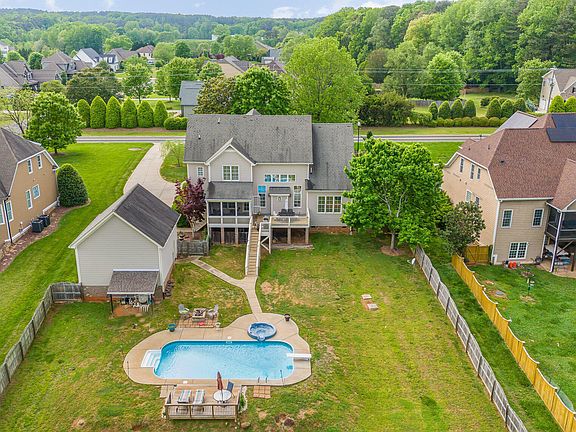 Get ready to fall in love with this new listing hitting the market today and available for showings Saturday, May 4th! Nestled in a quiet community in Wake Forest, NC, this beautiful 3776 square foot home offers the epitome of luxury living. Boasting 4 bedrooms with the primary suite conveniently located on the main level, this gem features 3 and 1/2 baths, a second-floor bonus room, and a third-floor large bonus/game room with a walk-in floored attic. As you step inside, be greeted by a gorgeous eat-in kitchen adorned with two pantries, seamlessly flowing into the family room with soaring ceilings and a cozy gas fireplace. The main level also flaunts a dining room with tray ceilings and a library/office space, all adorned with newly finished hardwood floors. Step outside and discover paradise awaiting you! Situated on a picturesque 1.1-acre lot backing to a thick tree line, this home offers both tranquility and entertainment. Relax in the screened porch or grill up a storm on the perfect deck, all while enjoying the privacy and beauty of mature trees. And let's not forget about the heated pool and hot tub, complete with a sun deck and fire pit for those unforgettable gatherings. Car enthusiasts will rejoice with both a 2-car attached garage and a detached 2-car garage, featuring a floored attic for added storage. Plus, the charming rocking chair front porch overlooks the mature landscape, setting the stage for delightful mornings and serene evenings. Don't miss out on the opportunity to call this your dream home - schedule your showing today before it's gone!''