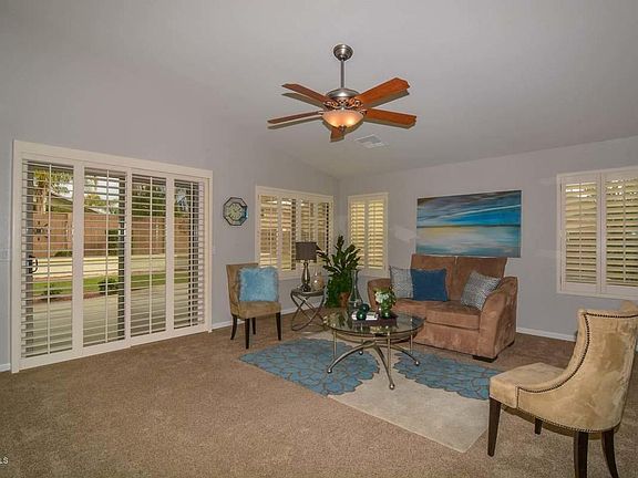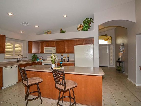Stunning well cared for single level home featuring 4 bedrooms, 2 bath and 3 car garage in desirable Litchfield Park's Wigwam Creek community. Beautiful kitchen has maple cabinets corian counter, large island and tons of cabinet space with walk in pantry. Nice open floor plan with vaulted ceilings, large master suite, with upgraded tile shower, separate tub, double sinks and glass block. Large laundry room with cabinets and sink. Gorgeous backyard features covered patio w/ green grass and BBQ and nice sitting area with views for entertaining. This home will not last long.