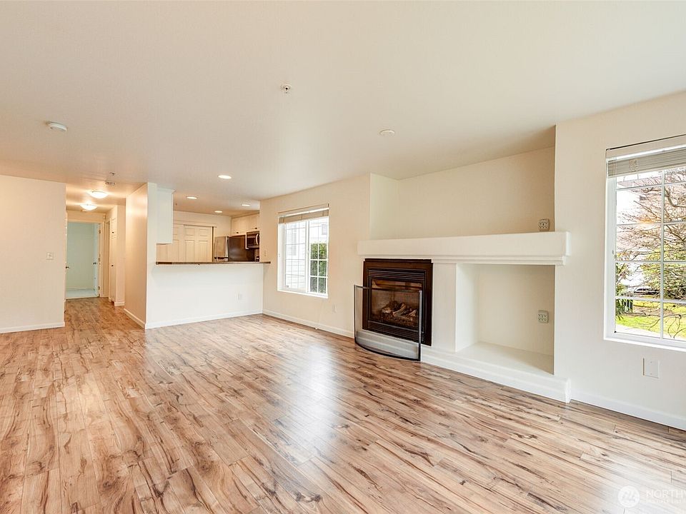 Welcome to Brookfield Condominium, a beautiful 3-bedroom 2-bathroom, ground floor end unit, gated community. This light filled home boasts, engineered hardwood floors, gas fireplace and abundant storage, including custom closets. Newer hot water tank, stainless steel appliances and quartz countertops. Sliding glass doors leads to a common area. One car detached garage and parking permit available through HOA for a second parking spot. Visitor parking nearby and community clubhouse available to host gatherings. NEW CARPET and PAINT. Affordable monthly dues and well managed HOA, conveniently located for easy access to I-5, Boeing, Paine Field, shopping, restaurants, and all amenities.