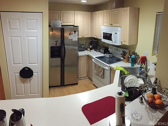 Very nice spacious and bright 3 bed room condo on 2nd floor overlooking community yard from living room, just like your private yard. No other unit is blocking view. All hardwood floor, main livingroom, 3 bedrooms. Tile entry area. Close to park and ride to Seattle and I-5 freeway. Very well maintain gated community. All appliances stay, washer, dryer and hot water tank is one year old. Good size balcony for barbecue , and storage room.