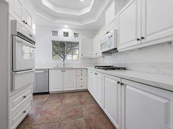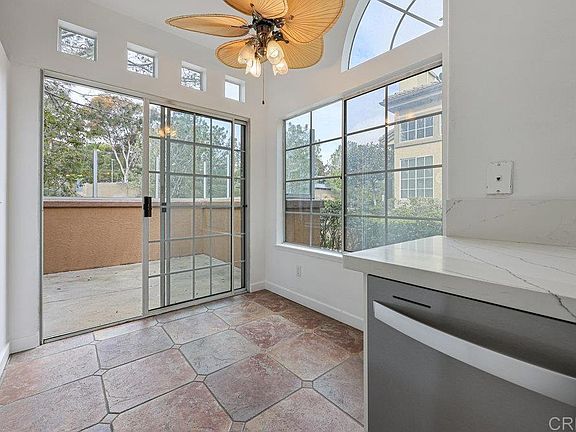 This Southwest facing townhome in Crest At Del Mar has windows throughout the living space which, along with the vaulted ceiling, provides a light open feel. Whether you enter from the attached garage, or the front entry, the entire living space including family room with fireplace, dining, kitchen and the large outdoor patio open up to you all on one level. This floorplan offers a Master Bedroom that is located only 5 steps up from the entire living space, allowing for easy access to the main bedroom with almost no stairs to climb. 2nd and 3rd bedrooms both have walk in closets and an extra vanity counter. Crest At Del Mar is located within an easy flat stroll to wonderful dining, shopping, and entertainment options at both One Paseo, and the Sky Deck. With the beaches of Del Mar, and freeway access, both less than 5 minutes away, this location allows for a great lifestyle. Newly installed flooring upstairs and beautiful new kitchen counters. Tankless water heater and Water Softening unit. This home is ready for its new owners to move right in!