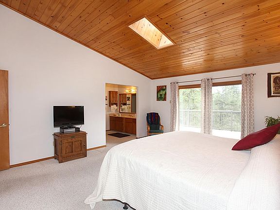 Forested Views from every window on 1.85 acres. This home boasts a comfortable open floor plan. The large brick fireplace in the main living area gives warmth and comfort on cooler days. Both floors have master suite's. There are 2 additional bedrooms upstairs and 1 downstairs. The walk-out lower level with a huge family room includes a wet bar. The 36x36 out building includes 3 stalls for horses or storage. This 3800 SF 5 bedroom 3 bath home is a must see property. Wild life abounds. Enjoy q