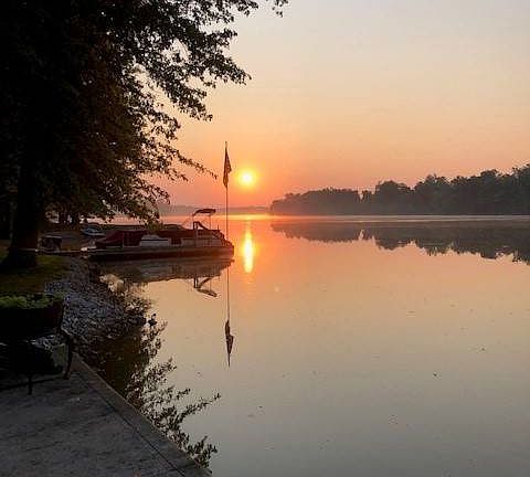 Home sits waterfront on Lake Loramie - a once in a lifetime opportunity to own and live in a beautiful custom built home on a picturesque lake. (4) Outside Cameras, (1) Doorbell Camera, Sprinkler System pumps from lake, Auto Blinds, Wolf Stove, Termador Refrigerator, Automatic Exterior Lighting.