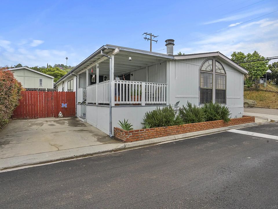VA approved and you OWN THE LAND to this corner lot manufactured home. This is not your typical mobile home where you have a huge space rent. There is only a $350 HOA fee which gives you access to the pool which comes in handy during those hot summer days. New carpet, paint, kitchen cabinets, roof all done within the last 60 days. This property is ready for immediate move-in. You will love having your own private yard, 2 carport spaces, and detached bonus workshop room which is 13 x 11. Who says you can’t buy an affordable detached home in San Diego county?
