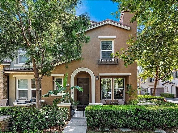 Inside the gated community of Serafina is this beautiful home on a peaceful corner lot surrounded by mature trees and lush landscape. Nearby is a gorgeous pool and spa with lot's of covered spaces, nearby fireplace, BBQs, picnic areas, tot lot, and green belt. Enter through a gated front patio to an open floor plan which includes a spacious living room, and family room/dining room with fireplace which opens to the kitchen and a second shaded patio. The kitchen features granite countertops, a center island/breakfast bar, ample storage and Whirlpool appliances including a double oven, microwave, and dishwasher. The second floor includes a loft/workspace with built-ins, a laundry room, and four spacious bedrooms, including a large master, with dual sink vanity and soaking tub. Tastefully practical, and meticulously maintained, this home includes easy care bamboo and tile floor, window treatments and a roomy finished two car garage. Close to shopping, entertainment and the 15 freeway. It's a great home in a great neighborhood! (Furniture is not included). The unit is currently occupied and will be available for tour by appointment only. No Smoking. If the application is accepted, will charge a one-time non-refundable $45 fee to run credit report.
