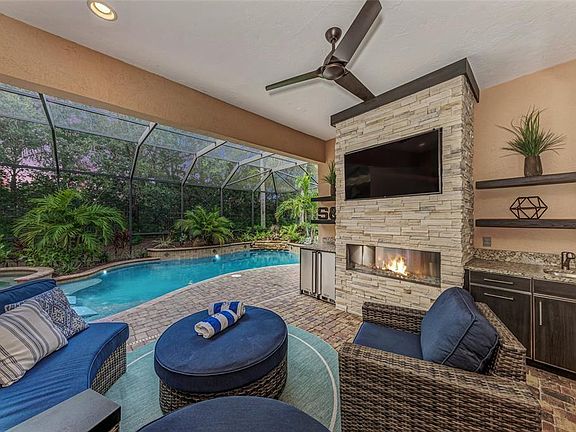 STUNNING MAINTENANCE FREE GIBRALTER HOME! This beautiful pool home is located within Lakewood Ranch Golf & Country Club. Walk into this fabulously upgraded 2-story home with a 3 car garage, 4 bedrooms, 3 1/2 baths AND a bonus room! The upstairs bonus room has a full bath that is perfect for your guests and extended family with plenty of room for them. They can relax on the 2nd floor lanai overlooking the beautiful pool area below. Upon entering the home you will notice the crown molding, custom millwork and open space. Built-ins, central vac, wood and tile flooring and more designer finishes! Stroll over toward your gourmet kitchen and see the extensive upgrades. European wood cabinets, granite countertops, stainless steel appliances, gas for cooking, and a breakfast bar. Finish your snack and head out to the tropical oasis that is awaiting! Pool, hot tub, custom rock waterfall, lighting, gas fireplace, enormous space to configure any style of furniture and deck items you choose! Pool is ready for salt but is currently chlorine. In-pool loungers to cool off on a hot summer day! Master suite has two huge walk in closets, slider access to the patio/lanai and a master bath with stand up shower, soaking tub and two sep. vanities. Garage is 3-car plus! Custom epoxy flooring was done recently. Golf and social memberships are available at the club but not mandatory. CDD is included in the tax fee.