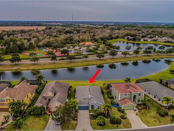 Fabulous home with lake view lot. Beautiful curb appeal as you drive up with fresh new landscaping and new exterior paint. You'll love the entrance as you enter and see the gorgeous engineered wood flooring. Large den/media room is upfront with French doors and upgraded fan. Formal dining is spacious and just steps around the corner is the fully equipped kitchen with new slate Stainless appliances, tile backsplash, 42in maple cabinets, breakfast bar and closet pantry. Fabulous open great room plan boast tray ceiling with crown moulding open to the kitchen and is perfect for entertaining. Triple sliders to screened lanai great for BBQ'ing and beautiful view of lake. Master has wood flooring, tray ceiling with crown, upgraded fan, walk in closet and bath has dual sinks, and garden tub. Two more bedrooms share a second bath in this split plan. Laundry has cabinets and great access to garage and kitchen area. So many features of this home like gutters, new exterior paint, interior paint, home pressure washed, new mulch, security system, and upgraded lights and fans. Just steps to the community center with a pool, tennis court, basketball court, playground and canoe launch. Boat launch is just minutes away on Ft Hamer Rd at the Manatee River. Only 5-6 miles east from I75 it is situated within 30 minutes from Tampa, downtown St. Petersburg, and downtown Sarasota. Ellenton Outlet Mall is located just a short 10 minute drive away. Great Home!
