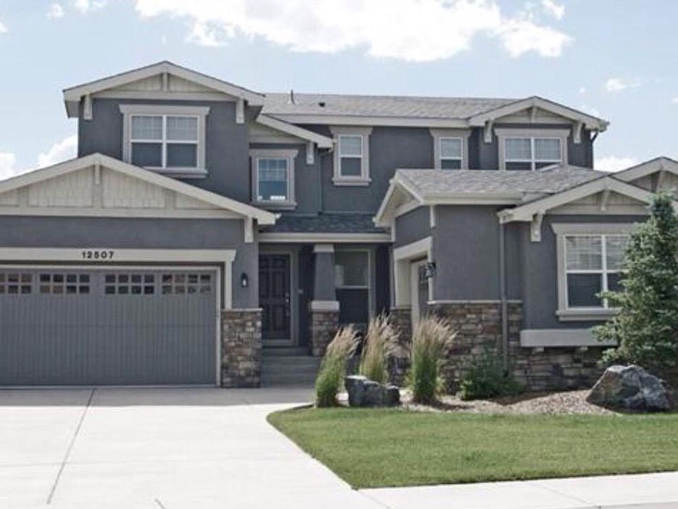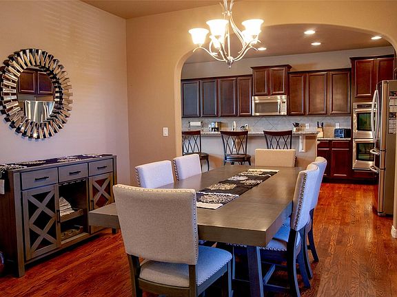 This spectacular home is located in Meridian Ranch. It's close to schools, shopping, Peterson & Schriever AFB. As you step inside the home, you will notice the beautiful wood floors. The formal Dining room is just off the entrance. The Living room is gorgeous. There is a wall of windows that lets natural light flood the room. You will find a ceiling fan to help keep you cool in the summer; a fireplace with stone surround to help keep you warm in the winter time. The Kitchen is fantastic! It has tons of staggered cabinets with crown molding and soft close cabinet doors, stainless steel appliances (including a double-oven), granite counter tops, and so much more! There is also an informal dining area just off the Kitchen! The Master Suite is on the main level and is very spacious, has a ceiling fan, a dual sided fireplace (the other side is in the Master bath). It adjoins to a 5 pc Master bath with dual sink vanity, large soaking tub and large shower stall - and a walk-in closet.