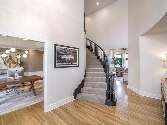NOT YOUR COOKIE CUTTER HOME! Nestled in a cul-de-sac, this stunning 6-bedroom, 3.2-bathroom home offers exceptional space and style. Walk into a grand entry with a curved staircase, a private office to the left and a bonus living space to the right—perfect for keeping the kids nearby yet tucked out of the way. The two-story family room boasts floor-to-ceiling windows and a striking stone fireplace. The chef’s kitchen is a dream, with a spacious island for seating and a charming turret dining area. Be sure to watch video in listing