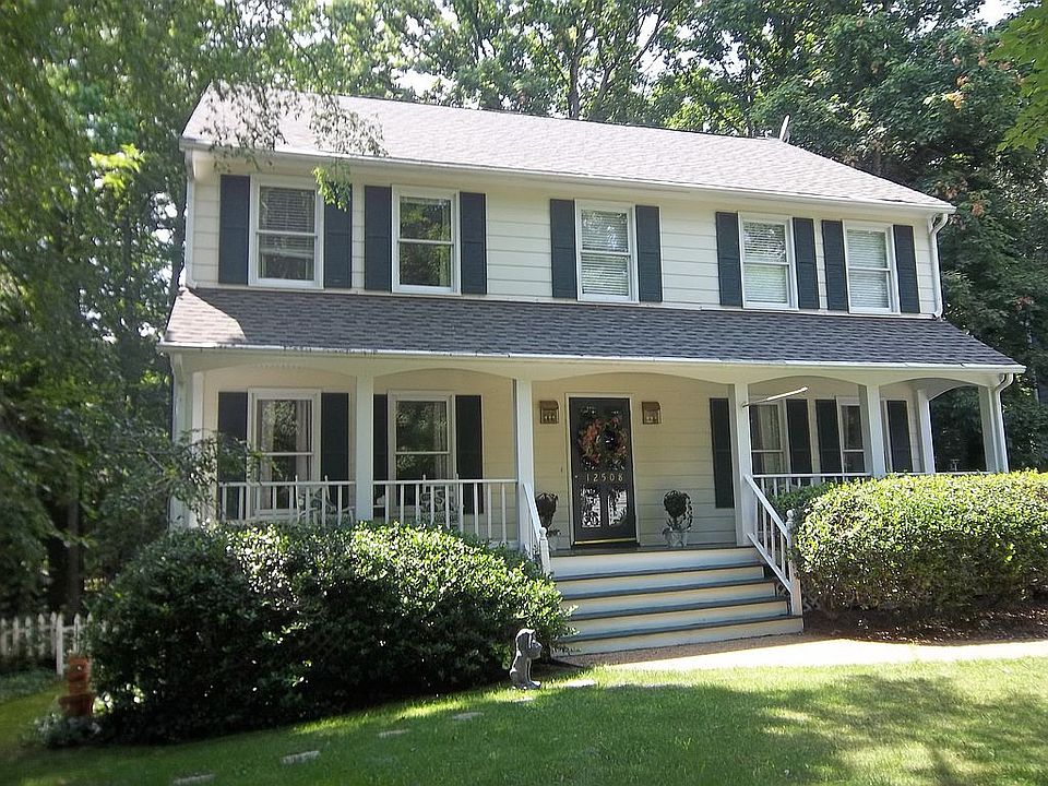3 bedrooms 2.5 baths with a huge master bedroom, almost 2200 sq. ft.. Country front porch and a 30 foot deck, great for entertaining-- Open flow between FR and Kitchen-- Kitchen has plenty of room for large table surrounded with 6 windows. Master has 4 closets, his and hers sinks, jacuzzi tub and more. New heating/ac down and new roof-- lots of moldings downstairs and all hardwood floors down-- gas logs and built in bookshelves in FR. Neighborhood Description Nice, quiet, wide streets-- great place to walk or bike ride- near Pine Run-- great school district-- walk to elem.school-