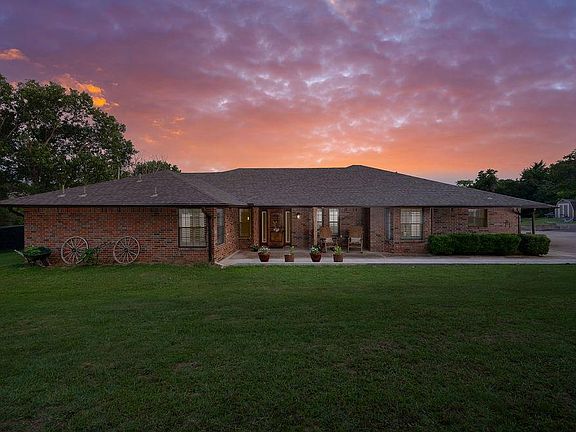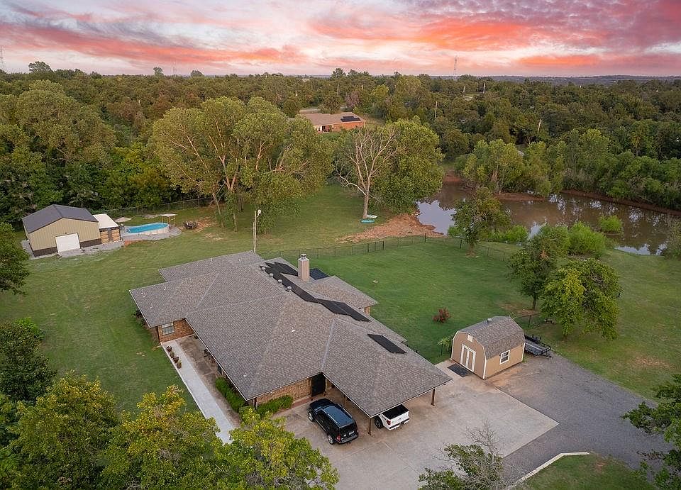 Livestock/Horse property close to Tinker AFB! Join us at our Open House!! Escape to rural Oklahoma City with this stunning home that offers the perfect blend of privacy and city convenience. This expansive property is close to I-240 and Tinker AFB, making commuting a breeze while providing a serene retreat. Inside, the kitchen and dining area feature abundant oak cabinets, two ovens, a 10-burner stove, two microwaves, space for two refrigerators, a wine refrigerator, and a coffee bar, ideal for any culinary enthusiast. Recent upgrades include new AC units installed in 2022, solar panels with OGE sellback monitoring, and a kitchen remodel. The home also boasts plantation shutters throughout, a new front door, and an extended front entrance area. The bathrooms have been thoughtfully updated, with one renovated in 2022 and two in 2025. Additional interior enhancements include a new fireplace mantle and replaced interior doors. Outside, enjoy the tranquility of a private pond, two outbuildings, a pergola added in 2023, and a livestock shelter built in 2024. The property’s elevated yard, open patio, and covered porch provide ample space for relaxation and entertaining. Tours only available with 24hrs notice due to large dogs and more buyer incentives in realtor remarks.