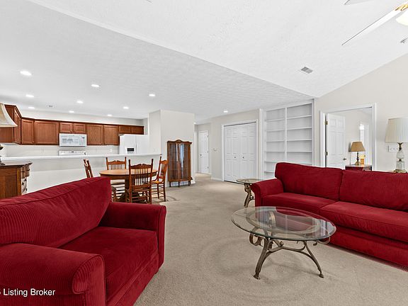 Welcome to easy living in the desirable Spring Meadow community! This charming 2-bedroom, 2-bath brick ranch offers a spacious and open layout with a vaulted great room, complete with a cozy gas fireplace, perfect for relaxing or entertaining. The kitchen has ample counter space and overlooks the dining area and spacious great room. A wonderful patio area can be accessed off of the living space. The primary suite includes a large walk-in closet off of the primary bath. A 2-car attached garage provides added convenience, and the low monthly fee of $50 means more time to enjoy life. Ideally located near I-65 for an easy commute, this home combines comfort, style, and practicality in one inviting package.