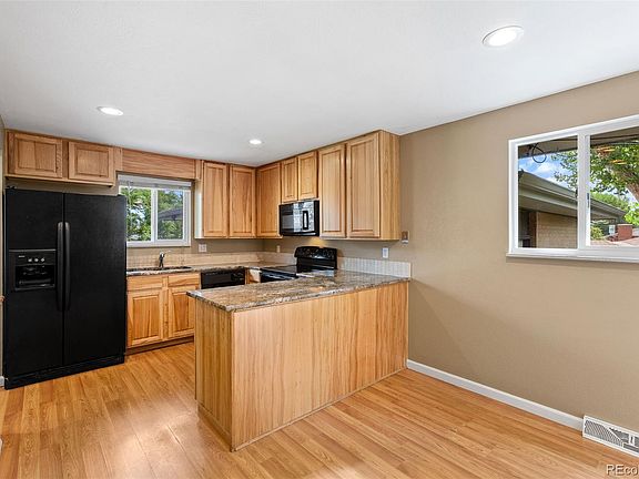 This is truly a must-see property! This remodeled 4 bedroom, 2 bath home has been updated from top to bottom, featuring a designer kitchen with granite counter tops, a nice black appliance package, and open concept living room, kitchen and dining areas. This home offers two conforming bedrooms, three-quarter bath, generous living room and laundry/utility room on the lower level, and two large bedrooms, a full bathroom, family room, dining area, and large kitchen on the upper level. Laminate wood floors throughout the upper level. All window treatments are being offered with this home. Walk out the back door to the large patio and huge yard complete with dirt track to practice your motocross/biking skills or a great place to race RC cars. This .28 acre lot has ample space for kids and adults alike. It has a very private feel - imagine the possibilities! Out front there is plenty of off-street parking, with ample space for your trailers or an RV. A large garage/shop with plenty of storage has it's own heater so you can work year round. Much of the infrastructure has been upgraded; upgraded electrical, a new roof (approximately 3 years old), and newer water heater, heat and A/C. Home is conveniently located with easy access to both 6th Ave. and I-70. Easy access to Red Rocks, the Federal Center, downtown Golden, and Colorado Mills, and several light rail stations are nearby. *Buyer to verify all information*