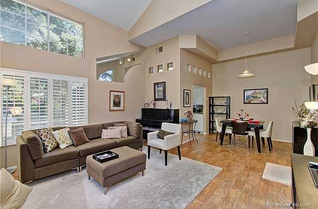 Beautiful Crest end unit townhome in Carmel Valley! Available 6/1/2017 - 3 bedrooms 2.5 bath, 2-car attached garage. - End unit with private greenbelt location. - Bright & open. High ceiling. Quiet location. - Vaulted ceiling with tons of windows. - Walk-in closets in all 3 bedrooms. - Central Air / Heat. - Refrigerator, washer/dryer. - Standard lap size community pool, spas and gym. - Water included in the rent - Walk to shops, dining and movies. - Minutes to beach. Excellent schools. Rent $3,150/mo. No smokers.