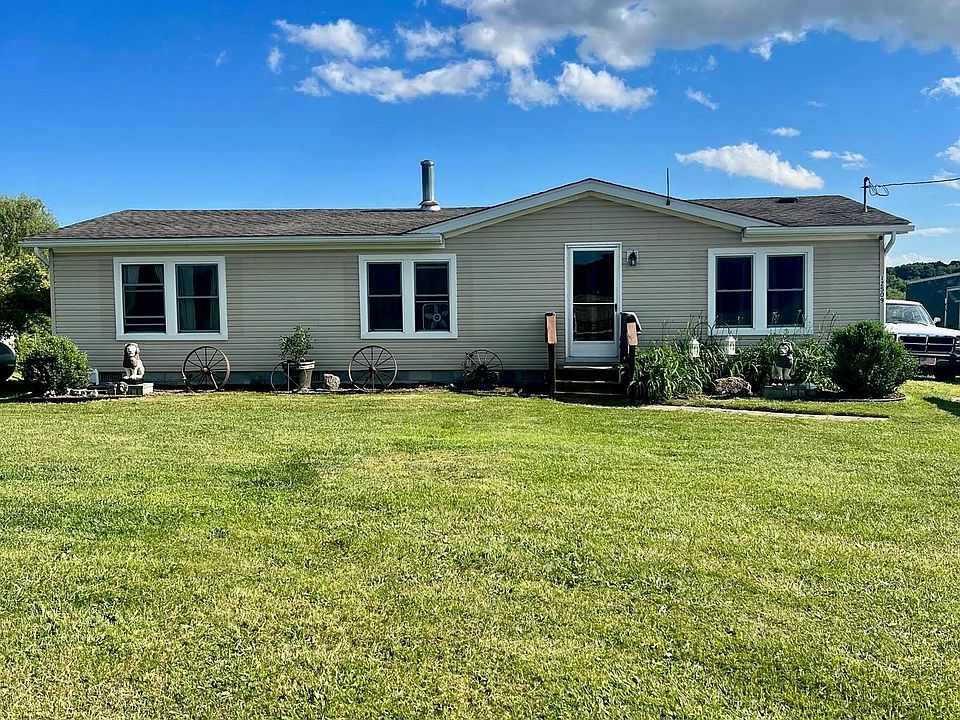 Discover the serene beauty of country living with this charming 3-bedroom 2-bathroom manufactured home nestled on 5 expansive acres. Located on a quiet dirt road with a gorgeous pond and 30x40 pole barn out back. This property offers the perfect blend of privacy and convenience.
